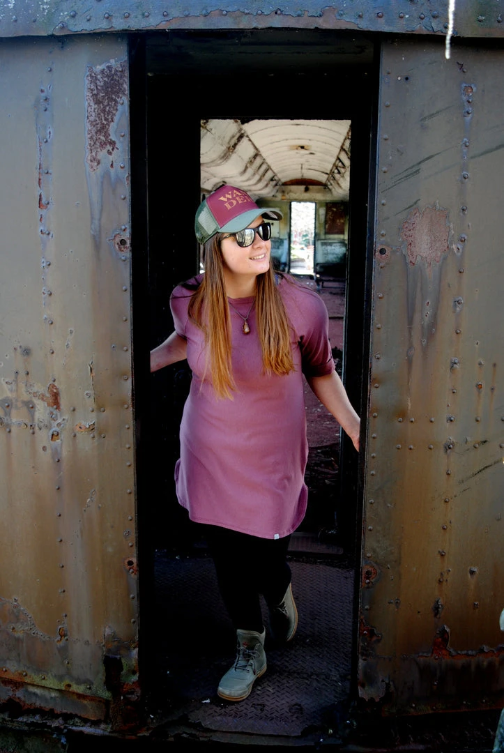 The Kimberly Tunic, a year-round staple! For work, layer it over leggings or fitted dress pants. For play, use it as a swimsuit cover up for paddling on the big lake or lounging in the sand. The elbow sleeves are flattering and a perfect out-of-the-way length. This tunic wears great with jeans and sneakers for a get things done kind of day. Made from super soft French Terry, this tunic features a high, low curved hem.